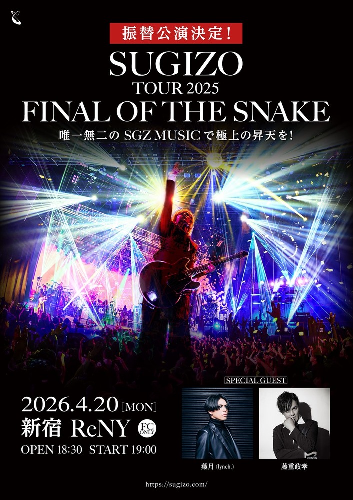 振替公演 SUGIZO TOUR 2025「FINAL OF THE SNAKE」新宿ReNY [FC ONLY] FC3次受付中!